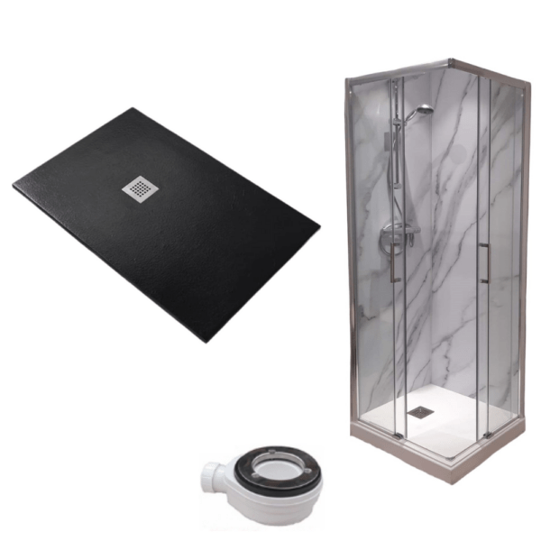 I pannelli sono dello stesso colore del piatto doccia completamente impermeabili nei colori bianco o nero. Spessore piatto doccia 3cm, fornito con griglia in acciaio inox 18/10 e valvola di scarico drenaggio acqua rapida. Inoltre questo materiale è igienico, antiscivolo, antibatterico, riciclabile e facile da pulire.